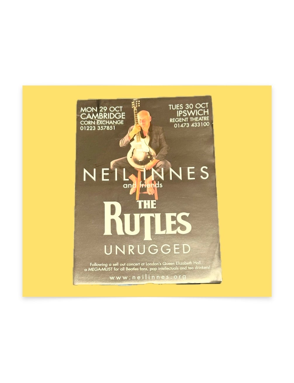 "Mon 29 Oct CAMBRIDGE Corn Exchange" and "Tues 30 Oct IPS WICH Regent Theatre"
